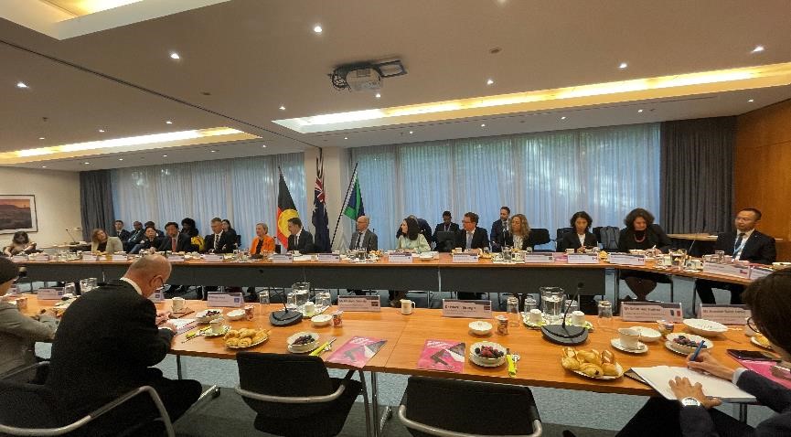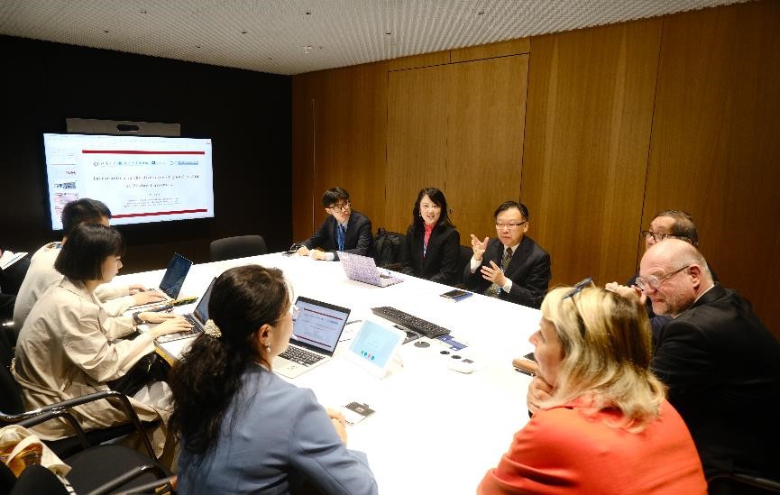期间,北大师生一行来到日内瓦高等研究院,与主管全球卫生外交的Surie MOON教授举行会谈。任明辉教授表示,日内瓦高等研究院是北京大学重要的合作伙伴,两校交往交流密切、合作基础坚实。期待站在新的起点上,与日内瓦高等研究院继续携手前行,拓展在全球卫生治理与外交方面的合作,为构建一个强大全球卫生治理体系作出贡献。