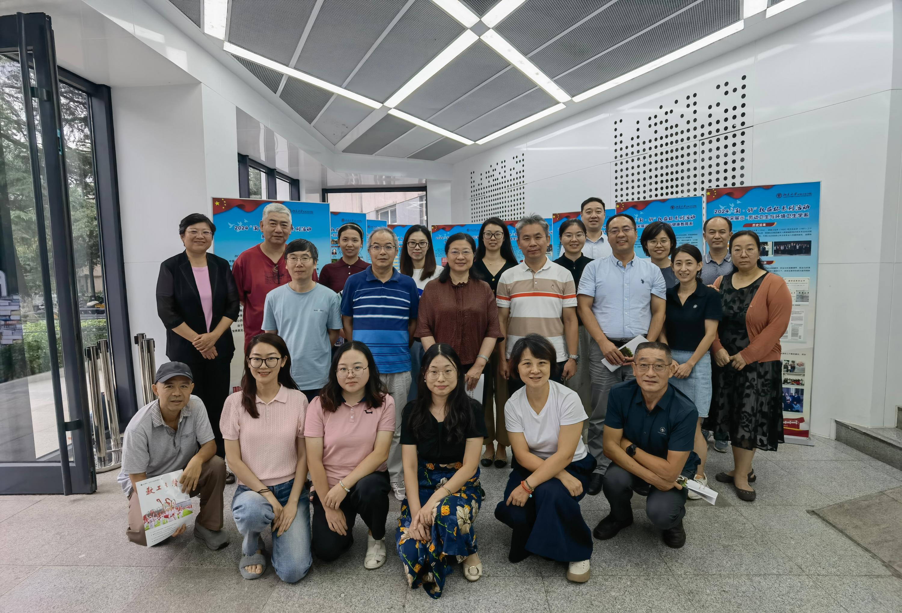 会后与会工会委员、工会组长在学院一层大厅北京大学公共卫生学院工会“淘·好”权益杯系列活动之“集乐淘 共创好”系室风采展示现场合影留念。