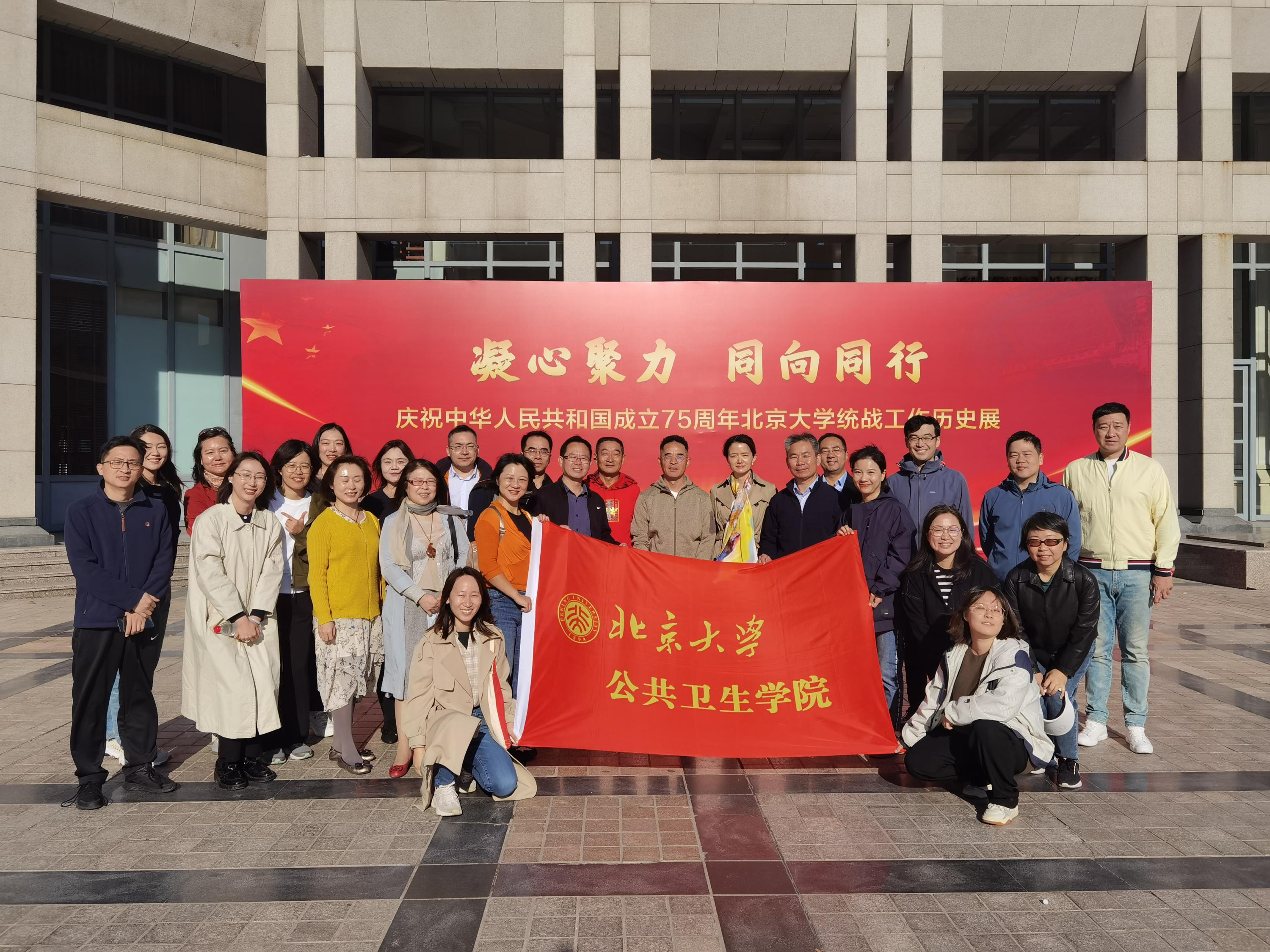 在庆祝中华人民共和国成立75周年之际,公共卫生学院党委于2024年10月15日上午组织学院统战人士、有关工作人员及部分教师前往北京大学,开展“情系华夏 共谱华章”集体参观活动,进一步了解北大统战工作的光荣历史和北京大学在中国特色社会主义建设的不同时期所取得的光辉成就,以增强做好新时期各项工作的使命感和责任感。