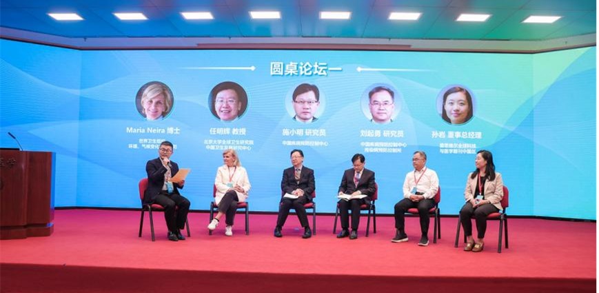 从左至右:邹志勇副教授(主持人)、Maria Neira司长、任明辉教授、 施小明研究员、刘起勇研究员、孙岩董事总经理