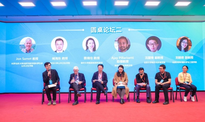 下午圆桌讨论由北京大学环境医学研究所所长助理高旭主持,讨论嘉宾包括科罗拉多大学公共卫生学院Jon Samet教授、复旦大学公共卫生学院阚海东教授、清华大学地球系统科学系蔡闻佳教授、加州大学伯克利分校Ajay Pillarisetti助理教授、北京大学城市与环境学院沈国锋副教授、北京大学环境科学与工程学院刘颖君副教授。专家们围绕“推进全球环境健康研究”展开讨论,分享了各自的看法与见解。