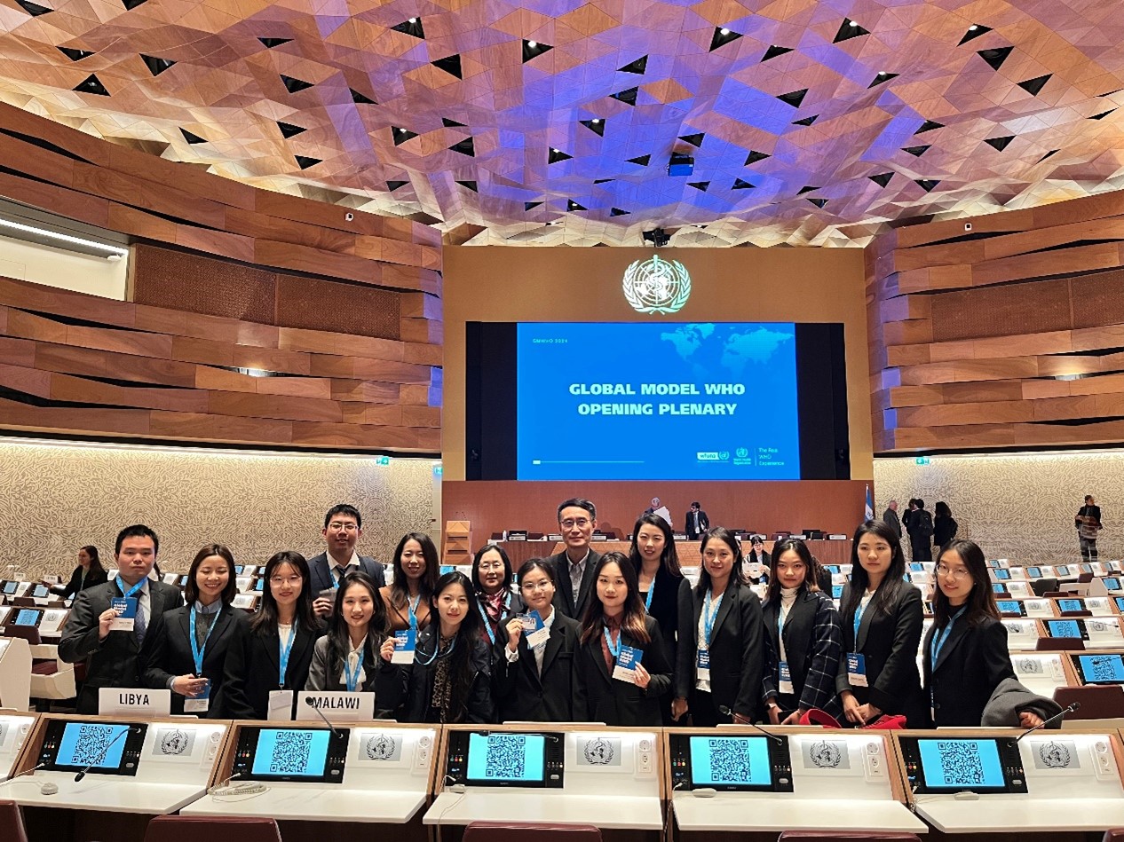 2024年10月29日,由世界卫生组织(WHO)和联合国协会世界联合会(WFUNA)共同举办的2024模拟世界卫生大会(Global Model WHO 2024)在联合国驻日内瓦办事处(万国宫)开幕。来自北京大学的25名师生代表出席开幕式,并将在为期四天的大会中模拟不同国家代表,为应对全球卫生挑战和解决全球卫生问题贡献北大青年智慧,发出北大青年之声。