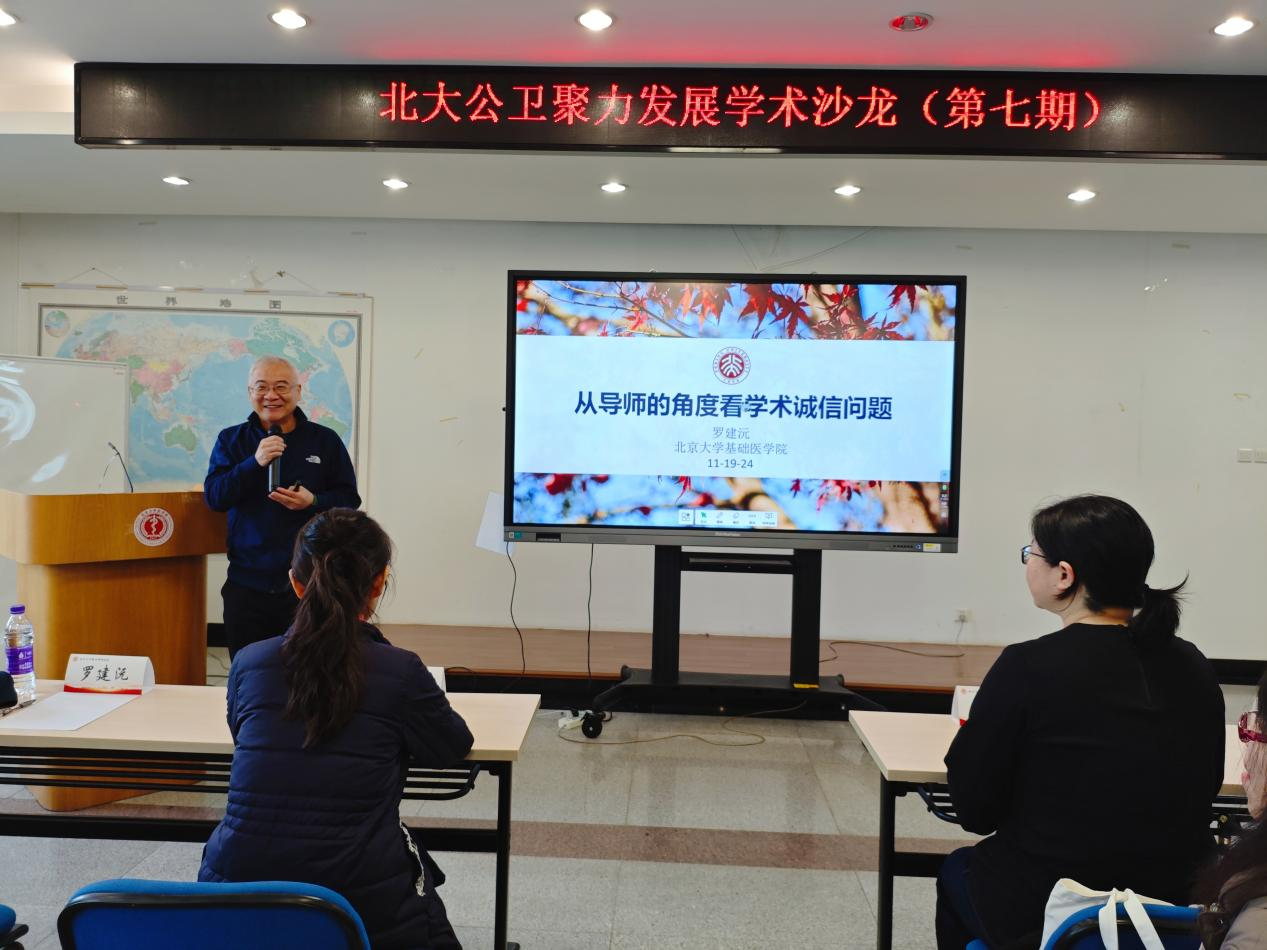 活动邀请北京大学基础医学院罗建沅教授、医学部科研处张海洪博士分别以“从导师的角度看学术诚信问题”和“负责任的研究行为与科研诚信”为题作专题报告。医学部科研处副处长赵春辉、学院副院长王海俊、副院长许雅君以及90多名师生参加了科研沙龙活动,活动由院党委副书记苏鸿主持。