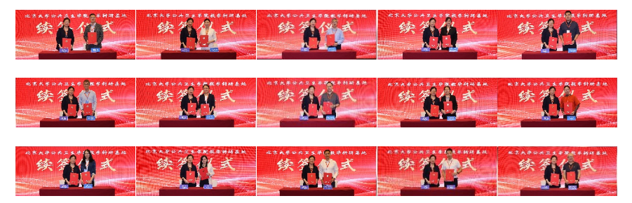 其后,许雅君副院长主持了教学科研基地续签仪式。公共卫生学院詹思延院长依次与到会的15家基地领导进行了合作协议的续签(另有2家未到会,3家协议仍处有效期内)。