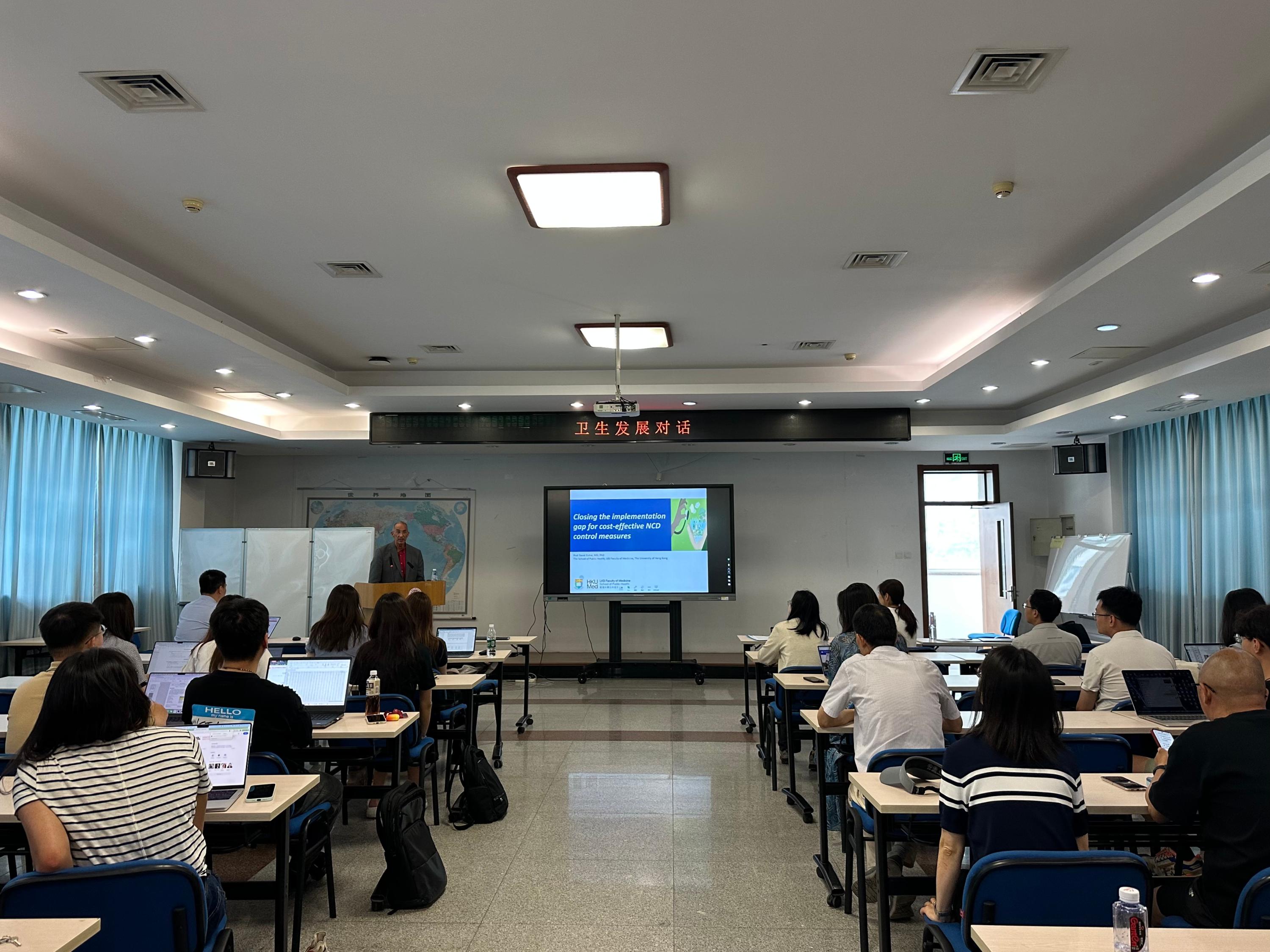 随后,Bishai应邀到树华楼三层会议室作题为“推动具有成本效益的慢病防控措施跨越实施差距”的卫生发展对话。北京大学、约翰霍普金斯大学、纽约州立大学、哥伦比亚大学等师生30余人参与交流,活动由中国卫生发展研究中心徐进副研究员主持。