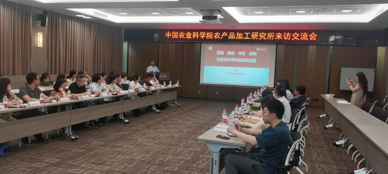 2025年7月9日下午,中国农业科学院农产品加工研究所一行到访北京大学医学部,双方在北京大学医学部会议中心205开展调研交流,加强双方在营养与食品领域的学术交流、科研合作、资源共享、平台建设和人才培养等工作。本次会议由公共卫生学院营养与食品卫生学系主任黄涛教授主持。