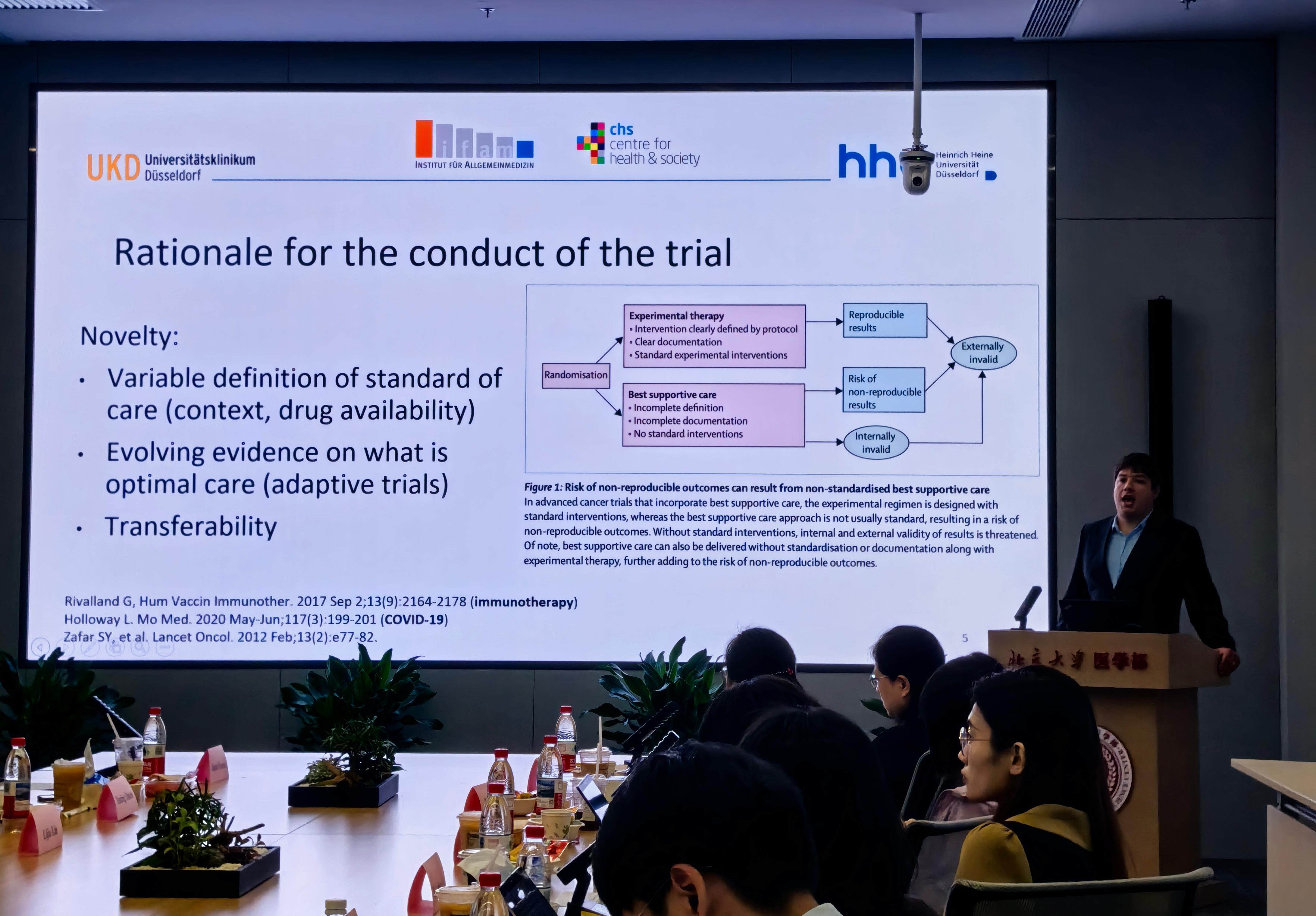 随后,北京大学公共卫生学院的孙凤研究员向在场人员介绍了北京大学循证医学中心的发展历程、工作团队、研究领域与研究成果。(图2)