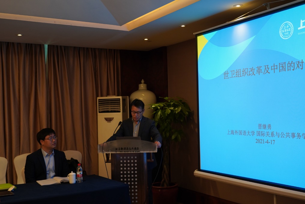 上海外国语大学国际关系与公共事务学院晋继勇副教授作了题为“世界卫生组织改革及中国的对策”的专题报告,从中国参与全球卫生安全治理的外部挑战视角,围绕世界卫生组织改革的背景、进程、其他有关各方的立场,阐释了中国推动世界卫生组织改革的原则和对策建议。