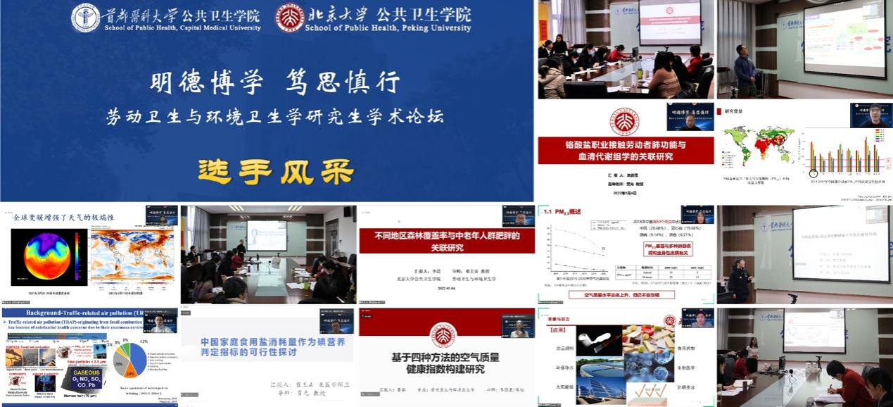 2022年1月4日,由首都医科大学公共卫生学院劳动卫生与环境卫生学系与北京大学公共卫生学院劳动卫生与环境卫生学系,联合举办的第十五届“明德博学,笃思慎行” 劳动卫生与环境卫生学研究生学术论坛圆满结束。本次论坛旨在拓宽研究生的学术视野,营造敢于探索、勇于创新的学术氛围,提高研究生的科研水平和综合素质。