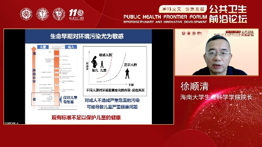 然后,国内外资深专家专场正式开始。专场第一部分由王海俊副院长主持,三位国际知名专家进行了报告。来自荷兰鹿特丹伊拉斯姆斯大学的Raat Hein教授报告的题目是“Interdisciplinary collaboration to innovate child and adolescent public health: 7 innovations”。他回顾了公共卫生110年来的发展,并提出了儿童青少年公共卫生学科交叉合作的7项创新。美国约翰·霍普金斯大学刘莉副教授报告的主题是“National, regional and global causes of 5-19 mortality in 2000-2019: a systematic analysis”。她系统总结了2000-2019年全球5-19岁儿童青少年的死亡原因,进行了不同年龄性别的时间序列分析,提出需要针对导致全球5-19岁儿童青少年的主要死亡原因进行干预,重点关注5-19岁儿童青少年的生存问题。澳大利亚莫纳什大学郭玉明教授报告的主题是“环境暴露与妊娠结局”。他从全球视野介绍了空气污染、极端温度、绿化面积等大环境因素对于早产及其它不良妊娠结局影响的研究进展,并提出了未来研究的重要方向及预防措施制定的一些建议。专场第二部分由北京大学儿童青少年卫生研究所副所长宋逸副教授主持,四位资深专家围绕儿童青少年生长发育现状、影响因素及干预措施的最新研究进展进行了汇报。北京大学马军教授汇报题目是“儿童青少年健康与共病预防”。他基于儿童青少年高发或易感的传染病、近视、超重肥胖、脊柱弯曲等问题,提出儿童青少年共病预防的原因和对策。北京大学刘建蒙教授汇报的题目是“剖宫产与子代健康”,他归纳人群和动物实验多元类型研究,系统介绍了剖宫产对子代健康的影响,并提出要敬畏自然,尊重技术,丰富证据的思考。浙江大学傅君芬教授报告的题目是“儿童青少年超重肥胖对性发育的影响”。她基于20万人的研究队列,用翔实的数据有力论证了超重肥胖对性发育的影响。北京大学王海俊教授报告的题目是“预防儿童肥胖的干预研究”。她不仅介绍了最近在全球领先的肥胖干预技术研究成果,还分享了基于社会生态理论的预防儿童肥胖的系列研究经验。专场第三部分由北京大学生育研究所副所长李智文研究员主持。两位资深专家围绕环境对生育健康的影响这一主题进行了汇报。海南大学徐顺清教授报告了“生命早期污染物暴露的健康风险”。他系统介绍了团队通过出生队列研究得到的有关生命早期环境有机和无机污染物暴露对于不良妊娠结局及儿童生长发育的影响的研究成果及其对国内外相关行业标准制定的支撑作用。厦门大学王海滨教授报告了“胚胎植入的分子路径”。他介绍了团队利用小鼠模型在胚胎植入和蜕膜发育调控机制研究方面获得的重要成果。