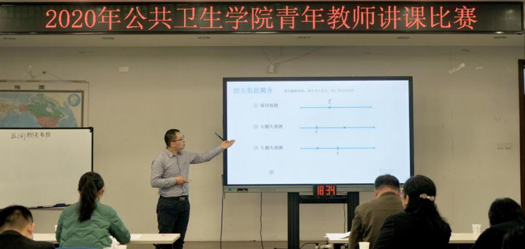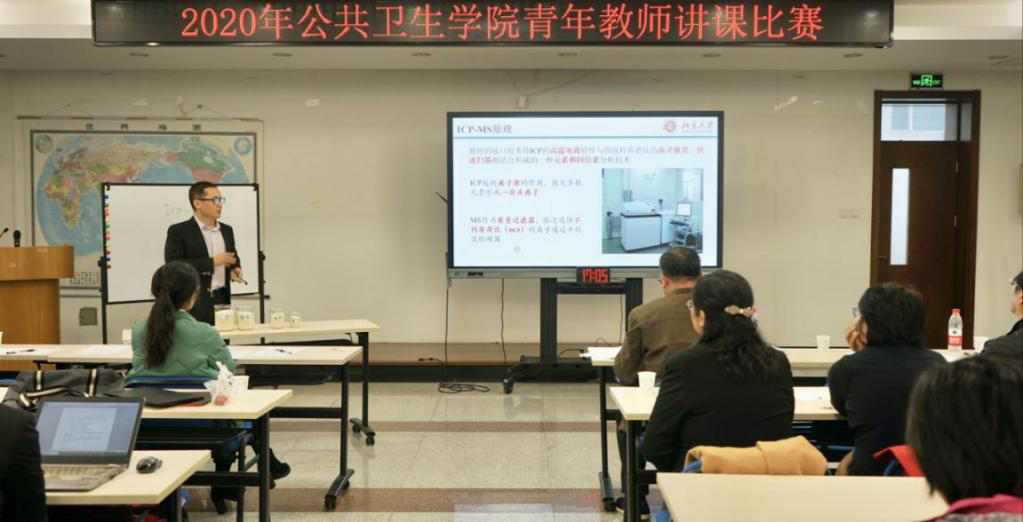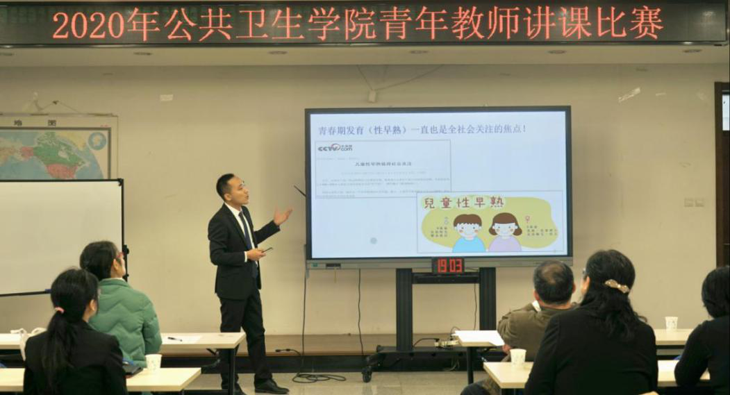 公卫学院“2020年青年教师教学基本功演示比赛”于11月18日上午8:30在医学部树华楼3层会议室隆重举行。来自6个学系(所)的6位青年教师登台竞技,分别展示各自的教学风采。学院党委书记郝卫东、教学院长王志锋等5位资深教授担任本次比赛的评委,学院数十位青年教师观摩了本次比赛。