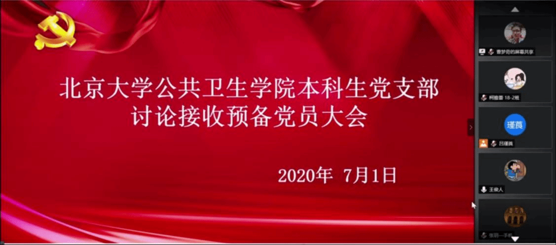 2020年7月1日,是中国共产党99周年华诞,在这个特殊的日子里,北京大学公共卫生学院本科生党支部召开了入一次特殊的“云上”发展大会。