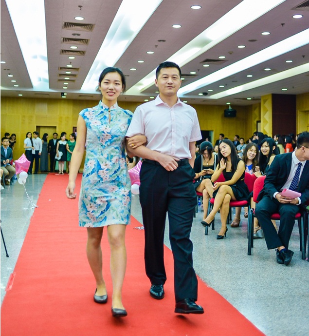 悠扬的音乐伴随者营养系毕业生的亮相,王军波老师与学生帅气的入场,将红毯秀的气氛带到高潮,女神们身着华丽的晚礼服或精致的旗袍,夺人眼球、令人难忘;男神们西装革履,尽显优雅魅力、绅士风度。