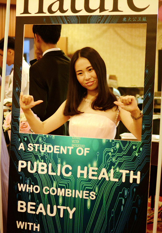 在晚宴上,同学们纷纷将取来第一份餐食送给自己的导师,以表达自己对老师的敬爱之情。随后,老师与同学们一边享受美食,一边愉快的交谈与合影。许多毕业生在印着“nature”、 “公卫好课题组”等趣味设计的拍照板后合影,还有拿着“公卫女神”、“论文改好了么?”、“我爱下现场”等妙语连珠的手牌合影。有趣的拍照板既折射了过去生活中的难忘片段,也展示了大家对未来的美好希冀。