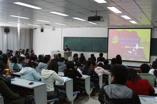 李海青教授的报告深入浅出,全面、详细的介绍了十八大报告的十个核心论断,围绕十八大报告针对的问题、十八大报告的核心思想、十八大报告的战略布局以及十八大报告贯彻的根本保证四个方面详细解读了核心论断的内涵。李教授将十八大报告的核心思想归纳为“走什么路”、“路如何走”、“怎样破局”三个问题。具体的讲,就是要坚定不移的走中国特色社会主义道路,坚持科学发展观的指导思想,奋力把改革开放推向前进。他结合时局的变化形势和社会生活中的具体事例,阐述应对国内外形势变化的总体战略和基本思路,并指出关键问题在于全面提高党的建设科学化水平。