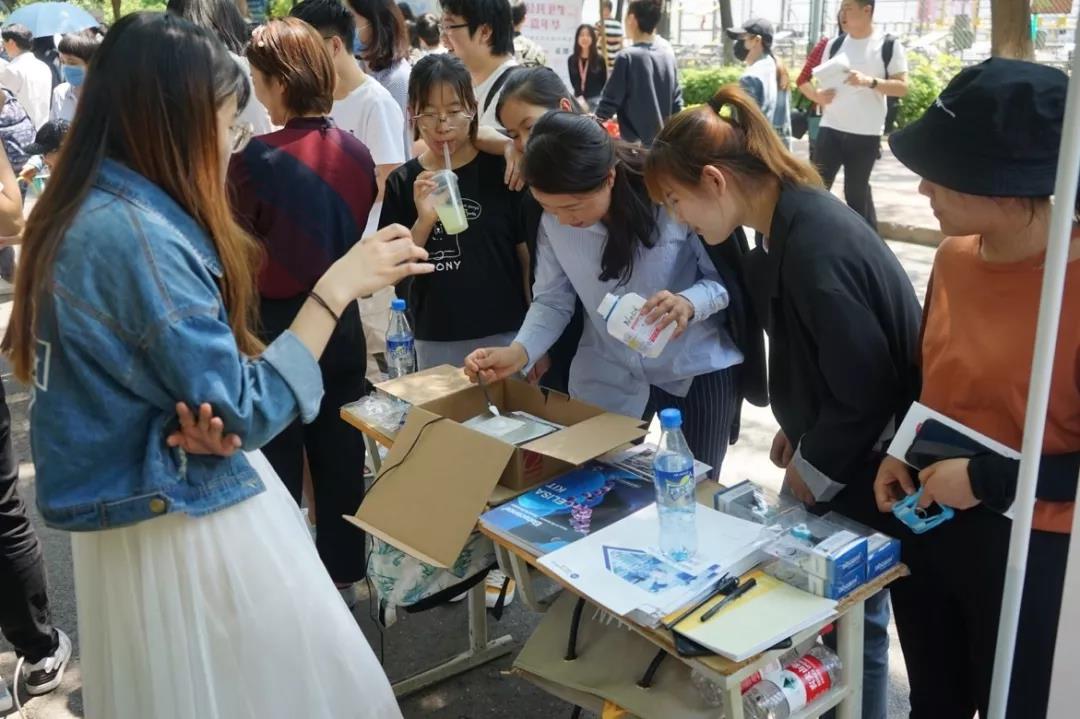 随着上午最后一声下课钟的沉寂,主干道上渐渐涌入熙熙攘攘的人群。游园会摊位上的工作人员早已准备就绪。在欢快的音乐衬托下,热情的公卫同学,挥洒着热情的手臂。有匆匆去食堂的路人甲,也有被摊位吸引而驻足的路人乙,更有对公卫充满好奇的真爱粉……
