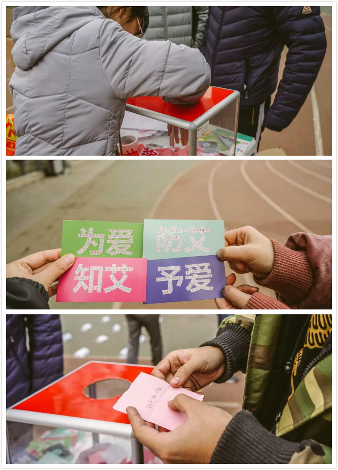 予爱活动吸引了许多学生前来参加,展板上一张张充满创意的涂鸦,不仅是靓丽的风景,更融入了大家对艾滋病患者的关心,传递着我们反歧视的决心。同学们积极在防艾展板上签名,绘制彩色涂鸦,其中不乏情侣共同手绘,传递这一份关爱和热忱;还有小朋友用稚嫩的笔触表达对艾滋病患者的关心。