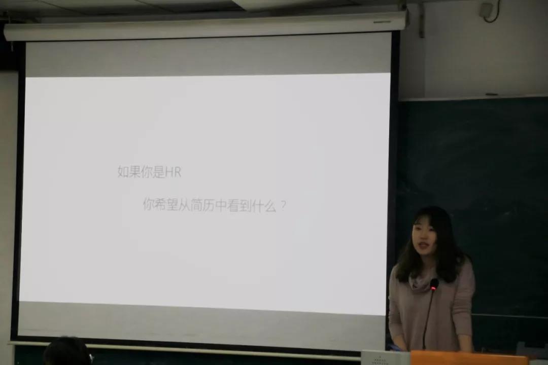 第一次骨干培训是由陈晰雯学姐来分享面试的经验以及介绍简历的写法,并现场开展了一次面试模拟的活动,同学们也积极参加,对面试体会更加深刻。