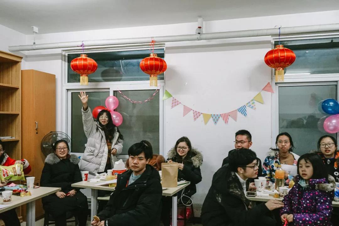 联欢会前,学生会成员们到地下室精心布置,挂灯笼,打气球,贴彩旗,拉横幅,把地下室装饰得充满了节日的喜庆氛围。