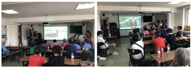 图为 营养班同学在为社区老人们展开关于AGEs讲座