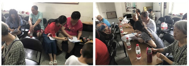 社区老人们陆续到场后,志愿者们首先展开了老年人群营养素养问卷调查,通过调查初步收集了解到了老人们对营养的关注程度、营养知识水平以及将营养知识运用到生活中的能力,为后期向老人们提供营养、饮食、行为建议提供了初步的依据。
