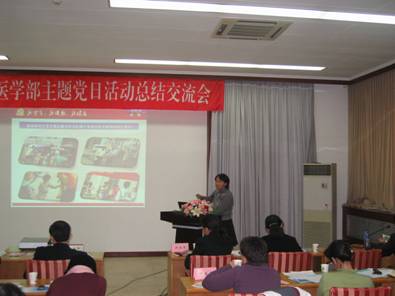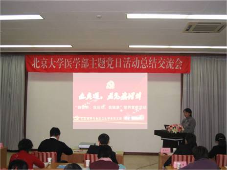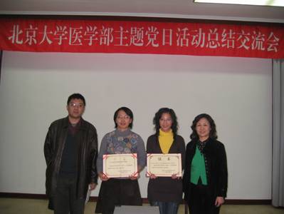 2008年12月5日,北京大学医学部“迎奥运,为党旗增辉”党日活动总结交流会在会议中心206会议室隆重召开,医学部党委书记敖英芳同志以及党委组织部、宣传部和各二级单位党委领导同志出席会议并担任本次党日活动评比的评委。本次党日活动评比共有医学部和各附属医院43个基层支部参与,11月27日经过第一轮评选后有13个基层党支部进入今天的最终评比,会上各基层支部的代表分别汇报了各支部党日活动的情况,营养支部组织委员张玉梅副教授最后一个出场,她以饱满的热情、清晰的条理把营养与食品卫生学系党支部和研究生党支部于2008年6月联合举办的“我营养、我运动、我健康”主题党日活动向评委和与会代表做了全面细致的汇报,生动形象的讲演得到了评委的一致好评,最终“我营养、我运动、我健康”主题党日活动以全校第一名的优异成绩荣获北京大学医学部2008年“迎奥运,为党旗增辉”党日活动评比一等奖。会后,敖英芳书记对本次党日总结交流活动做出了很高的评价,他指出参加本次交流的各党日活动丰富多彩,全面展现了我校各基层党支部开展基层党建工作的热情和成效,也为今后全校基层党建创新工作的开展提供了有意义的经验和借鉴。