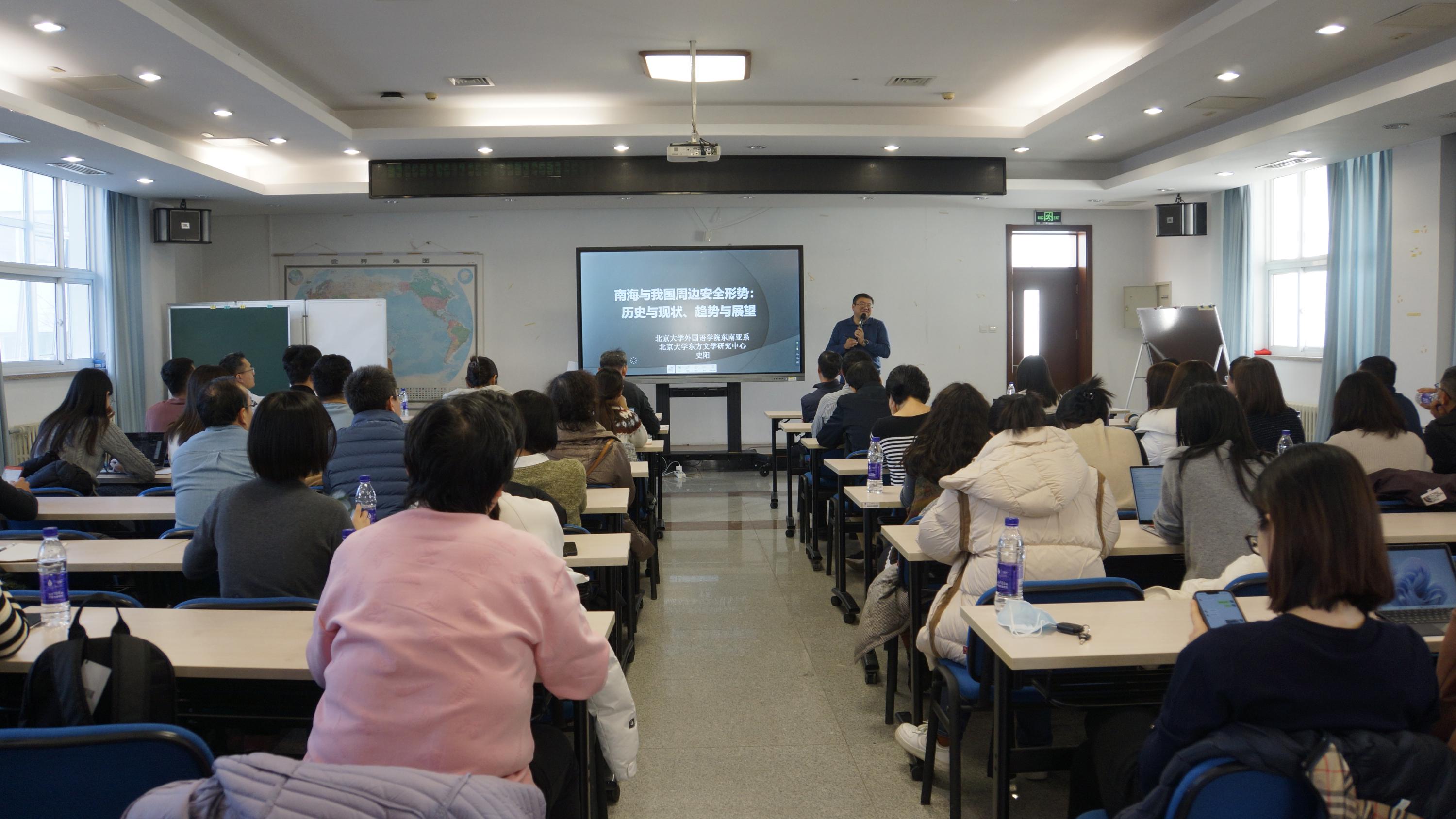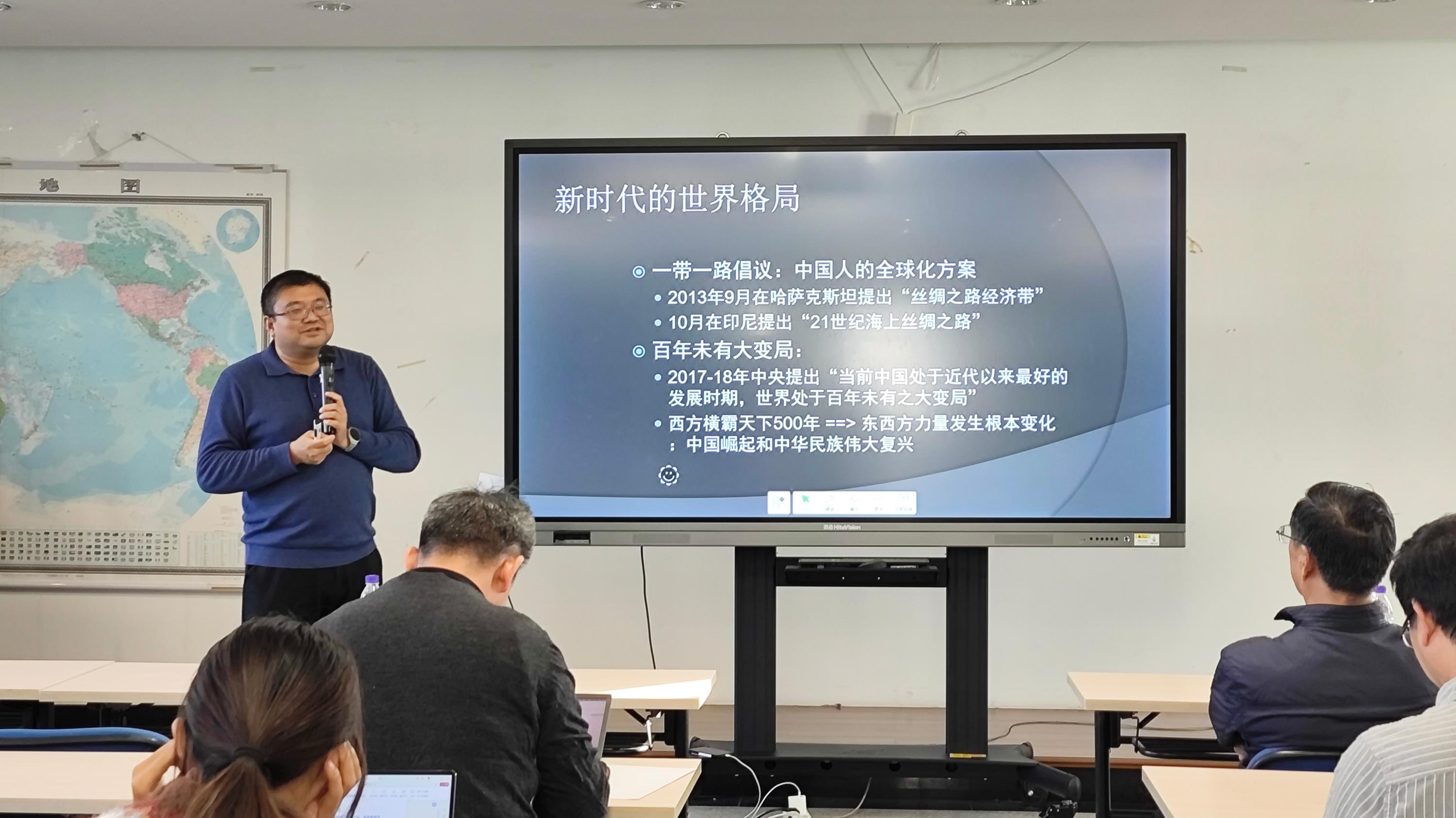北京大学公共卫生学院行政党支部、毒理学系教工党支部、流行病学与统计学系教工党支部及生育健康研究所教工党支部于2024年11月28日下午联合举办的国家安全教育主题党课活动在树华楼卫三教举行。北京大学外国语学院东南亚系主任史阳研究员应邀以《南海与我国周边安全形势——历史与现状、趋势与展望》为题作了精彩报告,院党委书记郝卫东出席活动,60余名师生党员怀着极大的兴趣和热情参加了此次党课学习。活动由党院办主任、行政党支部书记刘杰主持。