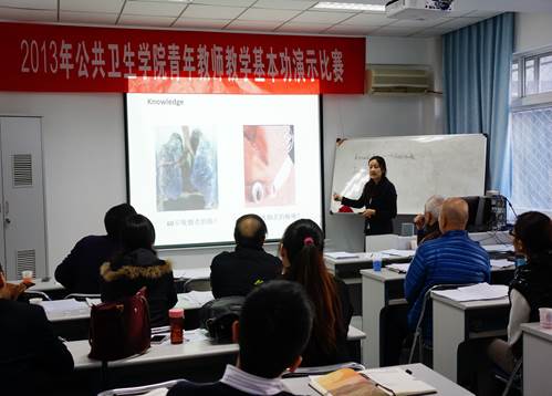 公共卫生学院“2013年青年教师教学基本功演示比赛”于12月20日下午2:00在公卫楼125会议室隆重举行。来自6个学系的6位青年教师参加了本次演示比赛,我院教学院长王志锋等6位资深教授担任本次比赛的评委,同时,特别邀请医学部督导专家刘斌教授和王振刚教授担任本次比赛的院外评委,数十位青年教师前来观摩了比赛。