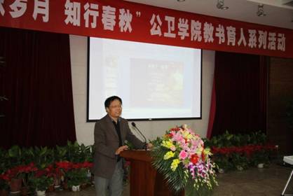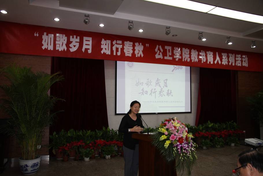 医学部工会主席王春虎首先致辞,他以高度概括的语言梳理了公卫学院“如歌岁月 知行春秋——教书育人系列活动”的活动历程和收获,高度赞扬了这次活动的意义,在这个特殊的日子里,北医百年校庆之时,举办这样一场讲座,使公共卫生学院的年轻教师们可以从老一辈教育者身上汲取教育的精神,带领一代又一代的学子们健康的发展,让老一辈教育者的教育思路薪火相传,最后王主席表达了对年轻教师们的期望和对公共卫生事业发展的美好愿景。