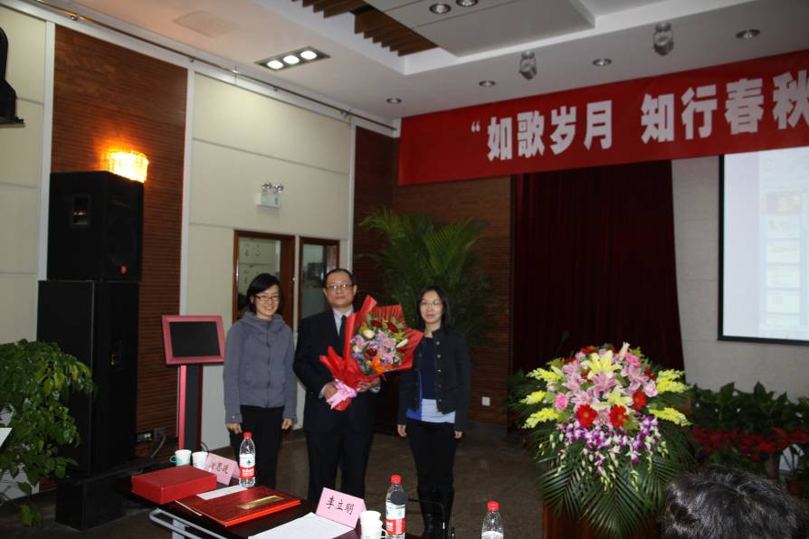 讲座之后,医学部工会副主席刘穗燕向李立明老师赠送了讲座纪念水晶牌,并表示聆听李老师一堂课深受启迪和教益;在薪火相传的环节中,流行病与卫生统计学系的高文静和吕筠两位青年教师代表向李立明老师献花。公卫学院孟庆跃院长代表学院向李老师赠送讲座纪念品并发表讲话,讲话中孟院长高度评价了本次活动的意义和影响,并对李老师带来的精彩讲座表示感谢。并提出这次教书育人系列活动不仅仅是公共卫生的传承,更让我们看到了各个学科领袖的国际性的视野和广阔的胸怀。