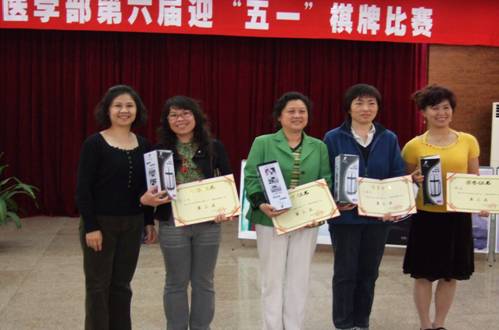 在4月30日的“拖拉机”比赛中,我院老师经过充分准备,合理搭配组队选手,强强联合,再一次把“拖拉机”比赛的冠、亚、季军一举囊括,成为医学部棋牌比赛的三连冠,并因此获得医学部工会特别颁发的“冠军蝉联奖”。为公卫学院赢得了荣誉。