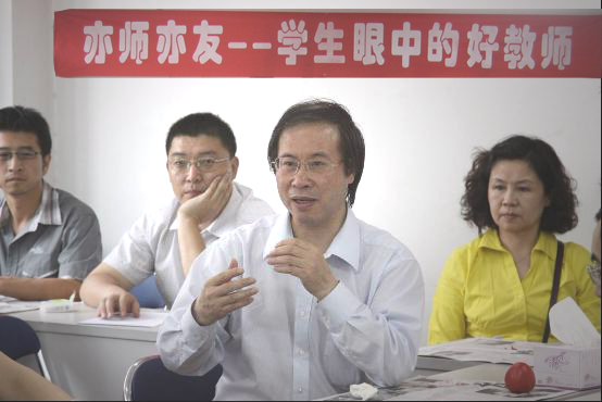 郝卫东老师首先发言,他提出老师做事应该坚持两个原则,一是做事情要全力以赴,二是行事不带功利性。郝卫东老师认为,只有坚持这两个原则做事,才能成为好老师。学生代表王凤清从学生的角度谈了对“好老师”的看法,她从自己及其他同学的经历为例,提出老师的鼓励对学生的成长至关重要。另一位学生代表曹洋认为,“好老师”能够与学生良好沟通;同时,她也提出,学生也应该做“好学生”,应该主动与老师联系,争取老师的帮助。在座的老师给两位同学的发言报以热烈的掌声。胡永华院长也同意同学的看法,他提出,当老师应该善于“换位思考”,理解学生的心理,合理引导学生。郝卫东老师补充说,教导学生的方法有很多种,或许批评或许鼓励,而无论是哪种方法和方式,作为老师应该坚持从心底里为学生着想。