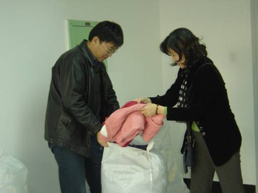 短短的一个星期,我院工会共捐助172件棉毛单衣。这次捐献大家非常踊跃,接通知的第二天劳环系的刘红老师就送来一大包衣物,截止到今天儿少所工会小组长王莹老师还抱着一大包衣物来捐献。