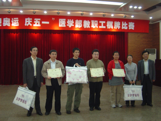2008年4月25日公共卫生学院工会为迎接医学部工会“迎奥运、庆五一”拖拉机比赛,举办了第二届学院棋牌比赛。经过3轮近三个小时的激烈比赛,四对选手脱颖而出,获得了代表公共卫生学院参赛的资格,他们分别组成了公卫1、2、3、4队。