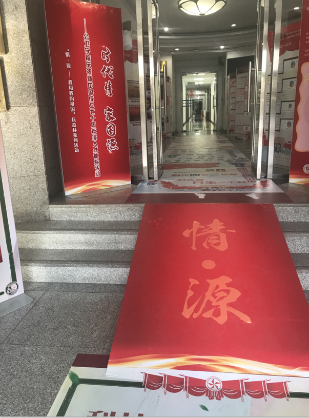 金秋送爽迎华诞,为庆祝新中国成立70周年,贯彻落实“不忘初心,牢记使命”主题教育;“时代情,家国源”——公卫学院庆祝新中国成立70周年浸入式体验活动暨公卫学院“情·源——我和我的祖国”权益杯系列活动于2019年9月18日在公卫学院新公卫楼一层大厅开幕。