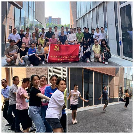 值此党的二十大、 北大医学办学110周年之际,为贯彻实行好学校的教学工作计划,开展丰富多彩的校园文化活动,以响应健康中国战略的号召。营养系教职工在教师节期间,开展了益智健身----跳绳活动,强身健体,以弘扬爱岗敬业精神,守好三尺讲台,将师德师风建设贯穿始终。由于疫情,部分在外阜做科研的老师们没有及时赶回参加,系里在校的老师们都积极参加了活动。