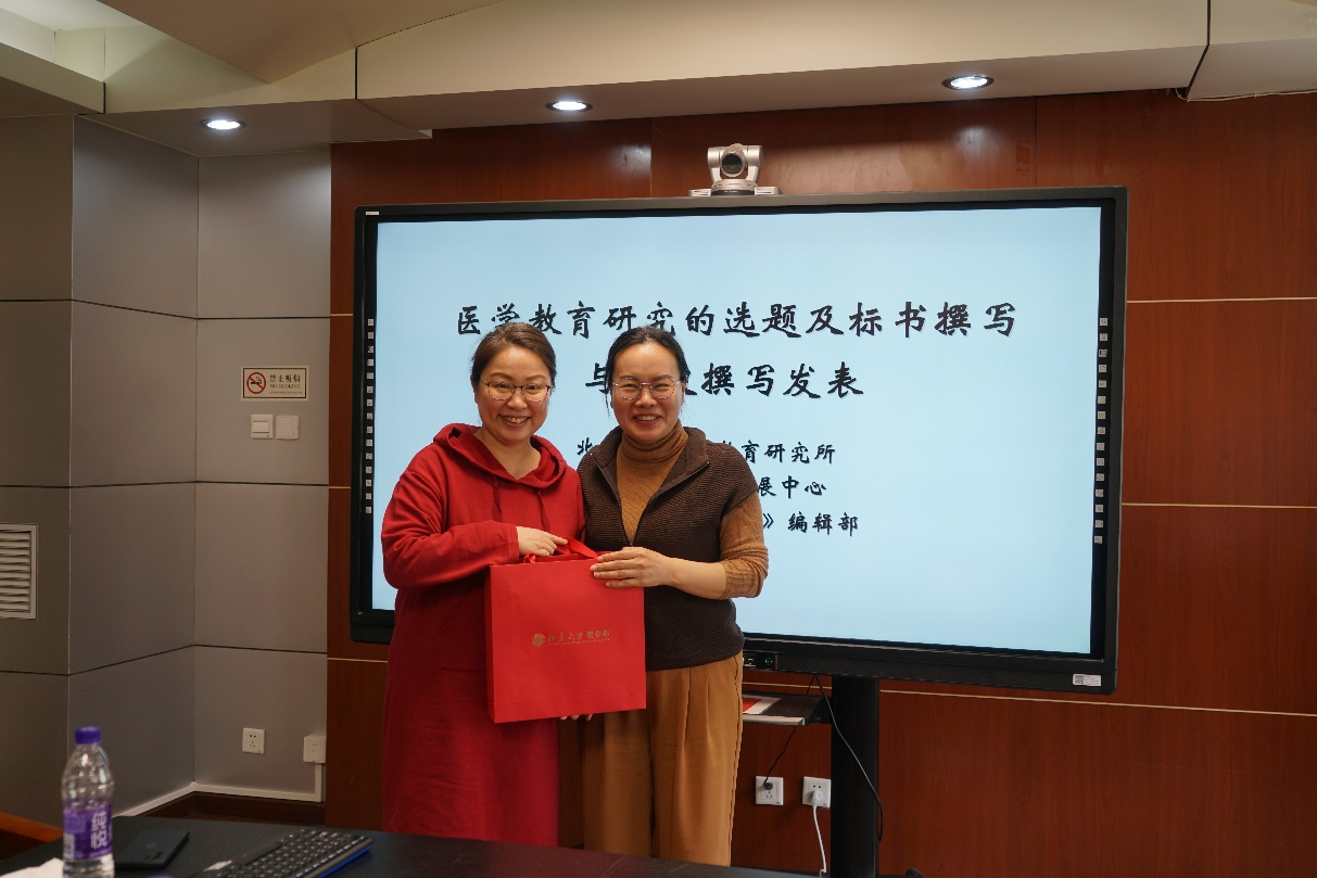 教书育人是高校教师的使命与职责,结合日常工作开展高水平教育教学研究、产出高质量研究成果是教师提高教研能力的重要途径,也是教学工作的亮点和特色。为帮助学院教师提高教研能力,20234月24日,院工会邀请《中华医学教育杂志》编委、编辑部主任,中华医学科研与管理学院秘书长殷晓丽研究员就医学教育研究中的选题及标书撰写与论文撰写发表这一主题举办专题讲座,院党委副书记苏鸿、副院长王海俊出席讲座,30余位教职工和学生到会聆听,讲座由院双语教学小组组长吴涛老师主持。