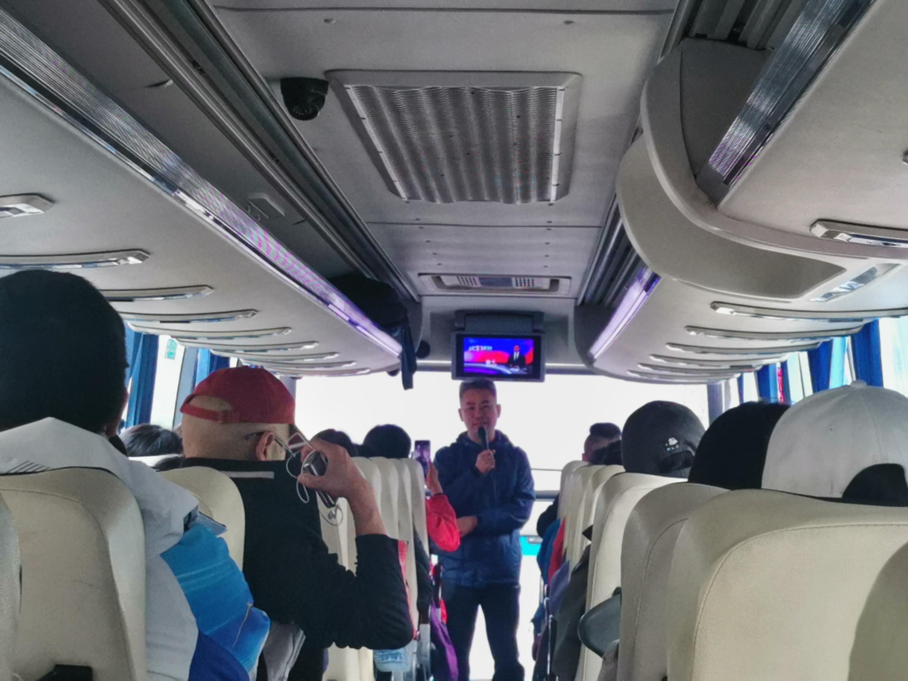 车辆飞驰,前往延庆途中,车厢内开展了热烈的理论学习:苏鸿副书记首先向老师们汇报了全国总工会第十八次代表大会的会议概况和主要内容;培训带班老师介绍了延庆当地历史发展、人文风貌,并就延庆红色第一党支部建设情况、延庆人民在抗日战争时期的英勇斗争的事迹进行简要介绍,并利用车载视频播放了科技冬奥、绿色冬奥、人文冬奥等几方面的冬奥会介绍视频,便于老师们全面了解延庆冬奥园区的总体概况,同时适当穿插的知识竞答,让枯燥的旅途增加了知识分享的欢乐的笑声。此外,本次活动还专门邀请了曾经参与2022年冬奥会志愿服务的博士研究生曹梦奇同学,他向老师们介绍参与冬奥志愿服务的经历和感受,表示要继续发言奥运精神,志愿者精神,让青春在学习过程中、在工作岗位上绽放绚丽之花。