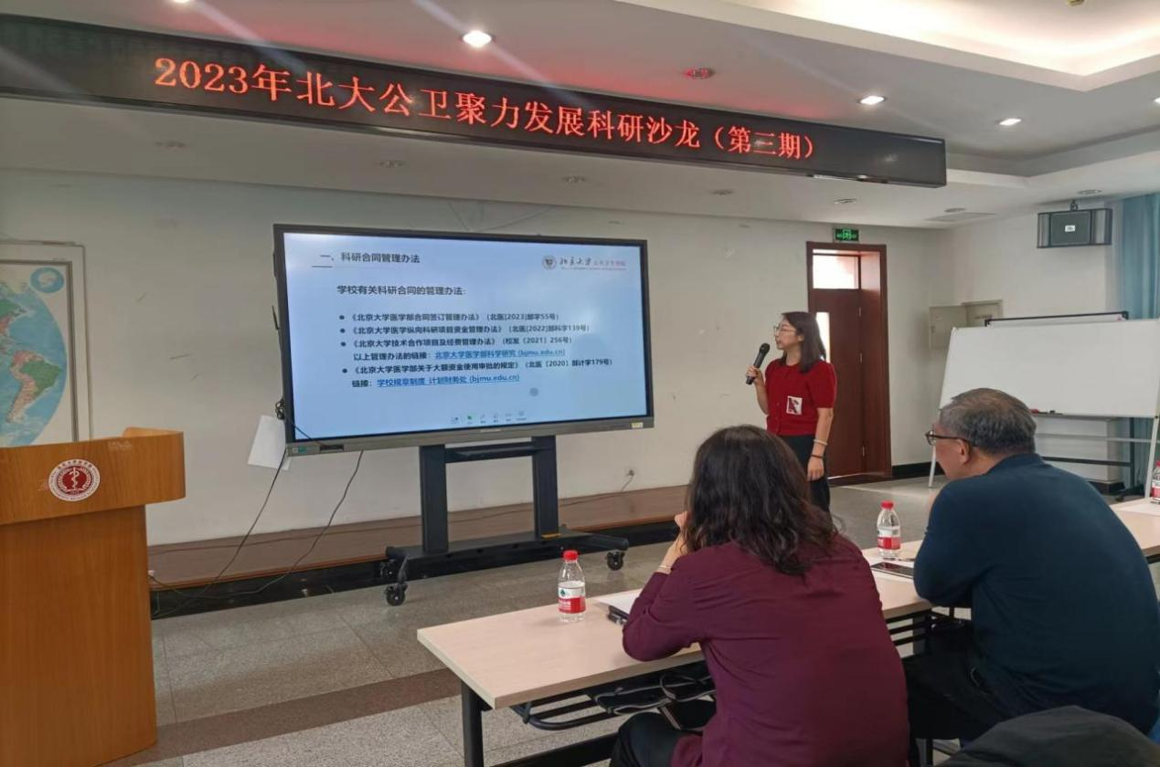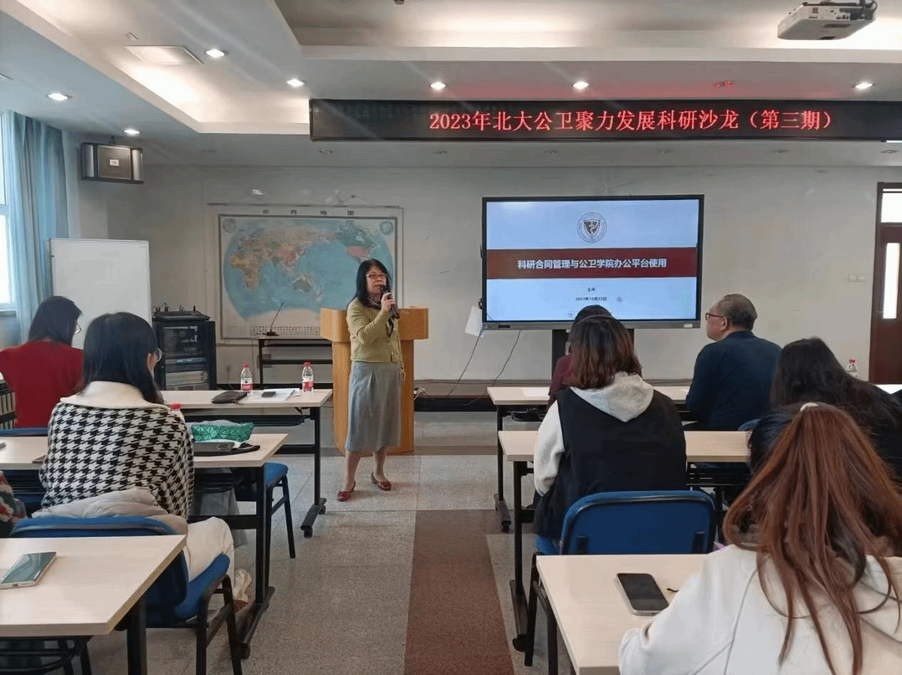 为使学院教师深入了解科研管理系统使用流程,规范科研合同用印申请平台填报,提高科研管理效率,10月23日,公共卫生学院科研办、工会联合举办的科研系统填报培训沙龙活动在卫三教进行,各系(所、中心)教学秘书及40余名骨干教师参加培训。学院副院长王海俊教授、院长助理简伟研教授出席培训会,培训会由科研办主任高苏堤副教授主持,科研办王洋老师做了《科研合同管理与公卫学院办公平台使用培训》的报告。