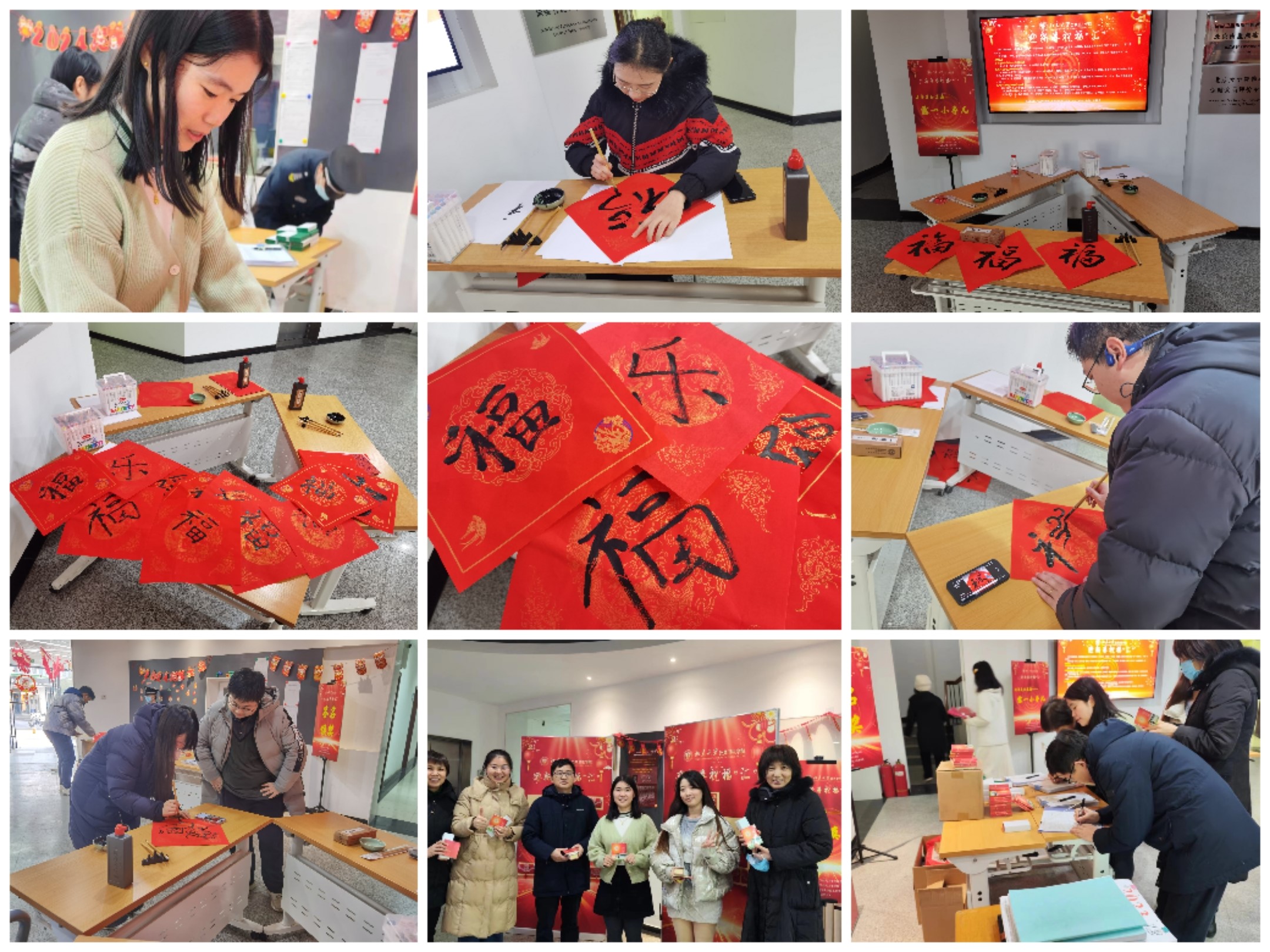 活动持续近两周,每天清晨的准时“投喂”持续着糖果的“甜”;红包猜谜区的红包随着时间推移一个个被揭开、取走,把象征中国工会团结统一的大大的“中”“工”二字清晰显示在眼前;“露一小手儿”书法迎春写福字、对联、迎春贴、马克笔绘画区域最热闹,老师、同学还有小朋友纷纷展示才艺,甚至还有约稿——一位喜欢书法的同学被约稿写春联,她现场泼墨挥毫,对联被取走的一瞬间,幸福洋溢……