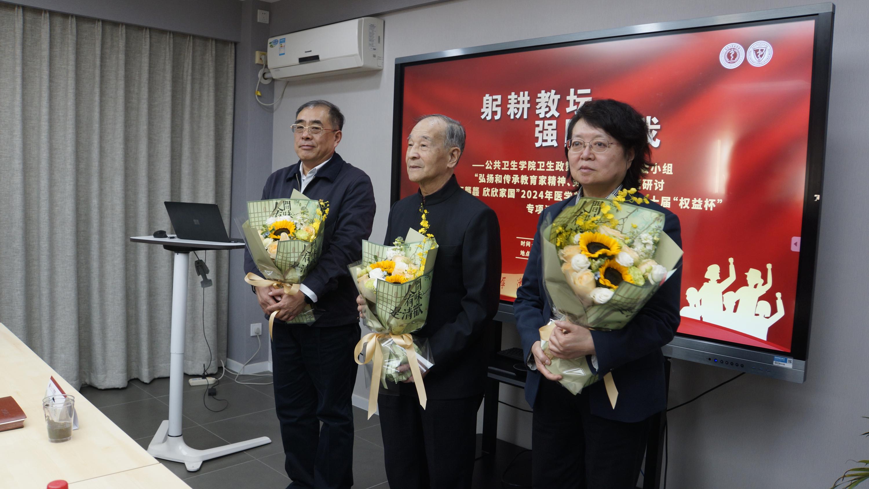 活动其间还安排了献花活动,卫管学系3位青年教师向参加本次活动的三位资深教授敬献了鲜花,不仅表达了对老师们的敬重,更是对老师们多年来为学系的发展辛勤付出的肯定和感谢。