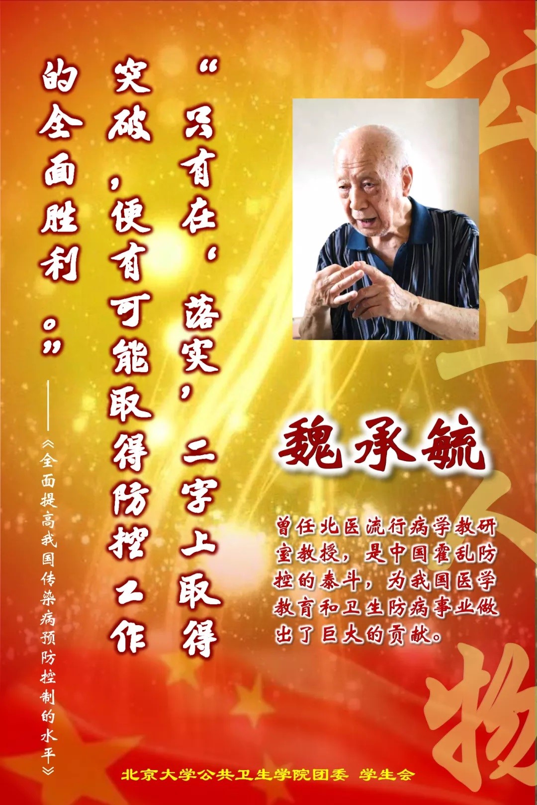 魏承毓教授,流行病学家,1928年生于甘肃省甘谷县。1947年考入北京大学医学院医疗系。1954年毕业留校随当时来华的前苏联专家攻读流行病学,并任流行病学教研室助教,其后晋升讲师、副教授、教授。在47年的教学生涯中,爱岗敬业,崇尚德、智、体全面发展和理论联系实际的治学风范,求真务实,为我国医学教育和卫生防病事业做出了应有的贡献。
